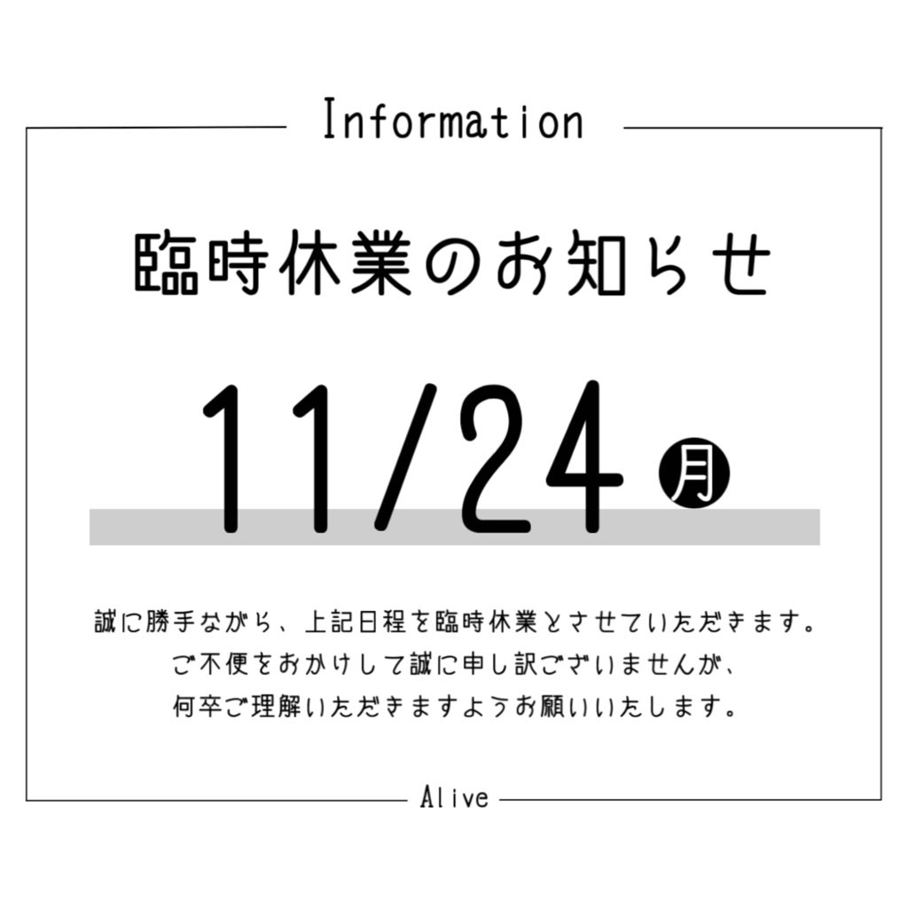 臨時休業のお知らせ